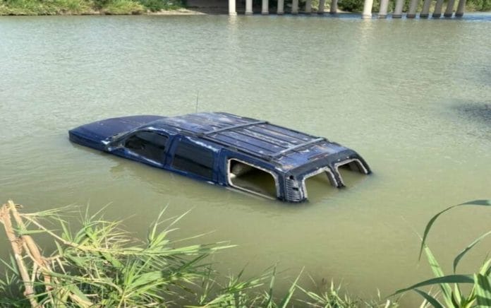 Con todo y camioneta se avienta narcotraficante al río Bravo