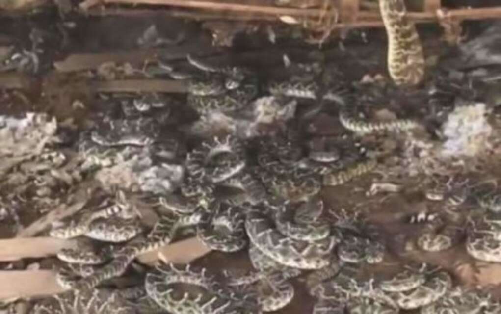 Pero cuál sería su sorpresa, que la víbora de cascabel no se encontraba para nada sola, ya que debajo de la estructura se encontraban decenas de serpientes. El hallazgo quedó inmortalizado en un vídeo viral del evento.