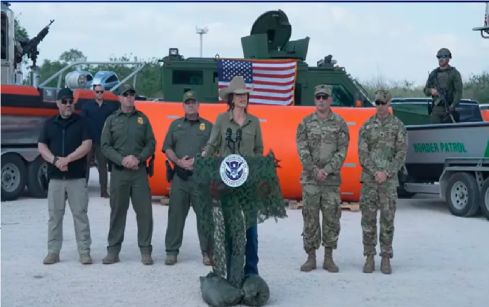 TEXAS – Kristi Noem, secretaria del Departamento de Seguridad Nacional se trasladó a Brownsville, en Texas, donde este miércoles anunció la instalación de boyas en el río Grande, en el área del Condado Cameron.