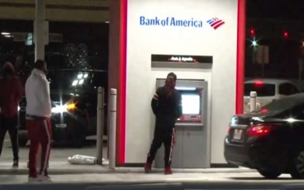 Algunos agentes del Departamento dePolicía del condado de Harris protegían el cajero ubicado al aire libre después del incidente ocurrido el domingo por la noche y notificaron a Bank of America.