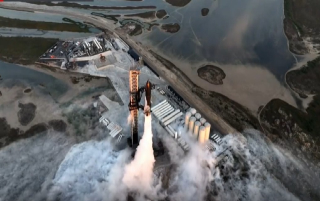 «John Insprucker, comentarista de SpaceX, señaló que, a diferencia de la última vez, los 33 motores del propulsor se encendieron según lo previsto. El propulsor también se separó sin problemas de la nave espacial, que alcanzó una altitud de 92 millas (148 kilómetros).