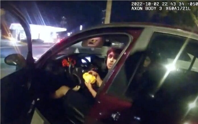 En las imágenes captadas por la cámara corporal y difundidas por la policía, Brennand abre la puerta del vehículo y le dice a Cantú que se baje. El automóvil retrocede, con la puerta abierta, y el agente dispara varias veces contra el vehículo. Continúa disparando mientras el auto se aleja.