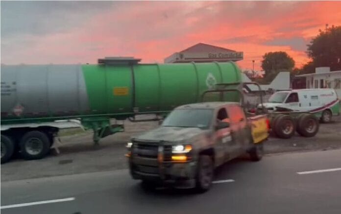 Según se dio a conocer, un tráiler Kenworth transportaba al menos 60 mil litros de combustible, cuando el conductor se percató que del segundo contenedor se derramaba el combustible decidiendo detener la marcha de la unidad.