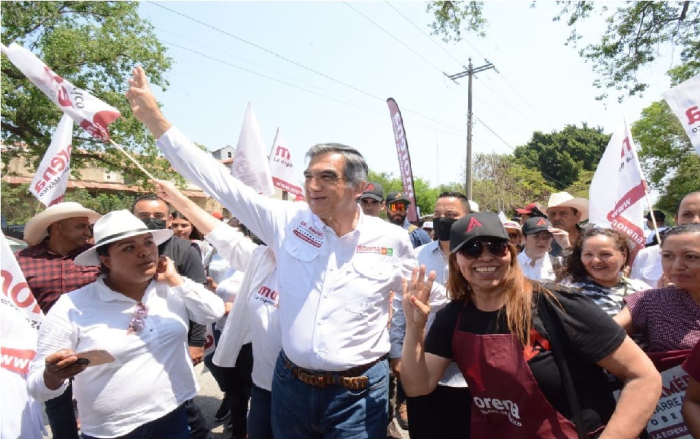 El Carmen, municipio de Güémez.- Aquí, en sus casas, con las puertas abiertas, las familias recibieron al doctor Américo Villarreal Anaya, candidato morenista en su larga caminata de varios kilómetros, que terminó entre aplausos y aclamado por los cientos de paseantes que se bañaban en las aguas del Vertedor, el paseo favorito de esta región citrícola.
