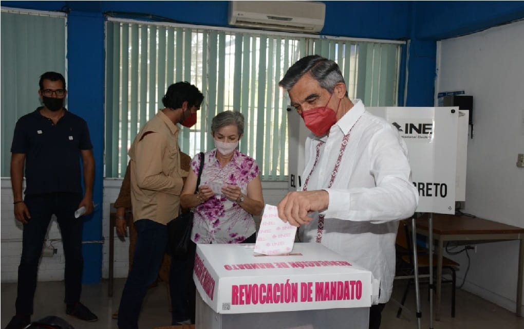 Tras emitir su voto este domingo en la casilla ubicada en la Universidad Pedagógica Nacional, a donde acudió acompañado de su esposa, doctora María de Villarreal, el doctor Américo Villarreal estableció el compromiso para que en su gobierno se promuevan las reformas necesarias para alinear a nuestro Estado y se implemente este instrumento democrático en Tamaulipas.