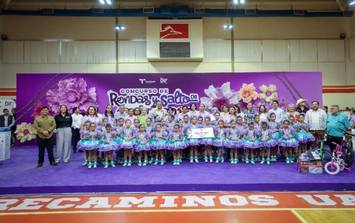 Ciudad Victoria, Tamaulipas. El gobernador Américo Villarreal Anaya y la presidenta del Sistema DIF Tamaulipas, la doctora María de Villarreal, premiaron a las y los ganadores de la final estatal del Concurso de Rondas Infantiles y Salto de Cuerda 2025, evento que se desarrolló en las instalaciones del Gimnasio Multidisciplinario de la UAT en esta capital, con la participación de alumnos de escuelas de las regiones norte, centro y sur del estado.