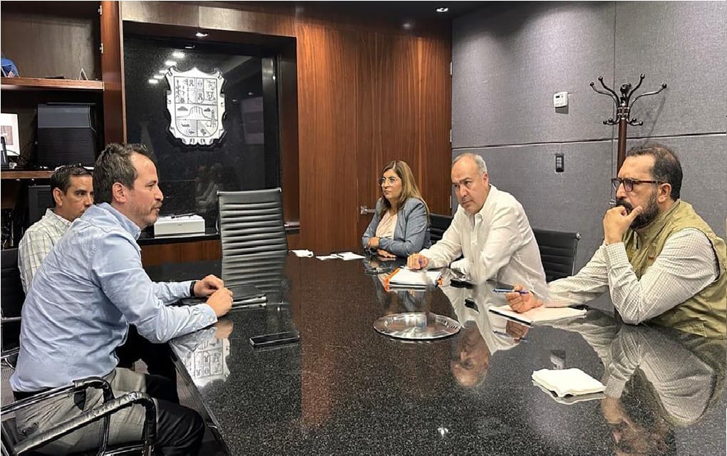 La secretaria de Desarrollo Urbano y Medio Ambiente, Karina Lizeth Saldívar Lartigue y el jefe de asesores del Gobierno del Estado, Alejandro Rábago Hernández, se reunieron con el director de Relaciones Públicas e Institucionales, Alberto Burnell y Director Comercial Noreste, Adrián Galván González.