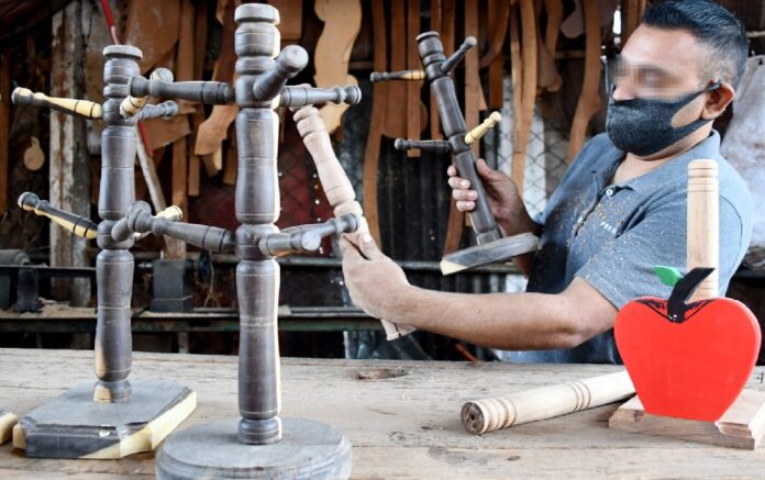 Los nueve años que tiene de experiencia trabajando la madera en este centro, le han permitido fabricar diversos utensilios de cocina como tortilleras o vasos hasta muebles como mecedoras, para entregar los pedidos a tiempo y garantizar la calidad de los mismos, contrata la mano de obra de algunos compañeros artesanos y carpinteros, con quienes comparte el trabajo y las ganancias.