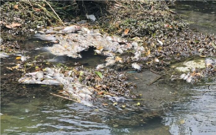 -La Procuraduría Ambiental y Urbana en coordinación con la COEPRIS, investigan el hallazgo de especies sin vida en varios puntos del canal que cruza el boulevard Pablo L. Sidar