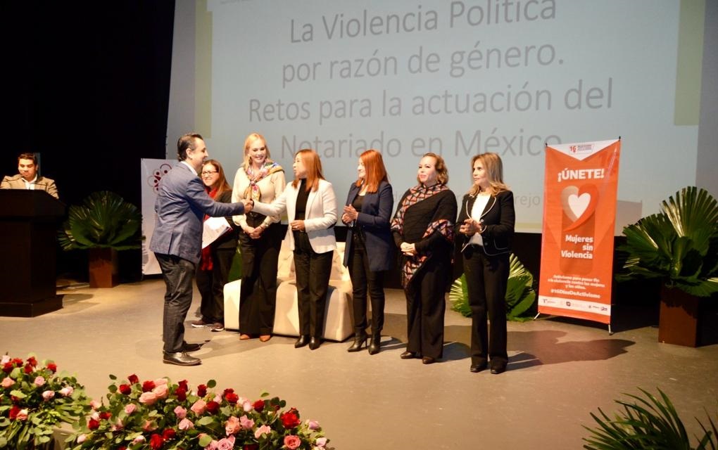“La violencia que vivimos las mujeres todos los días no se ve eliminada en el ámbito político, necesitamos el apoyo de las notarias y notarios, reconocemos su capacidad, el dominio del tema, sabemos que van a responder ante cualquier situación con honestidad pero también queremos que lo hagan con perspectiva de género”, expresó la directora general del Instituto de las Mujeres y presidenta del Observatorio de Participación Política de las Mujeres Dianaluz Gutiérrez González.