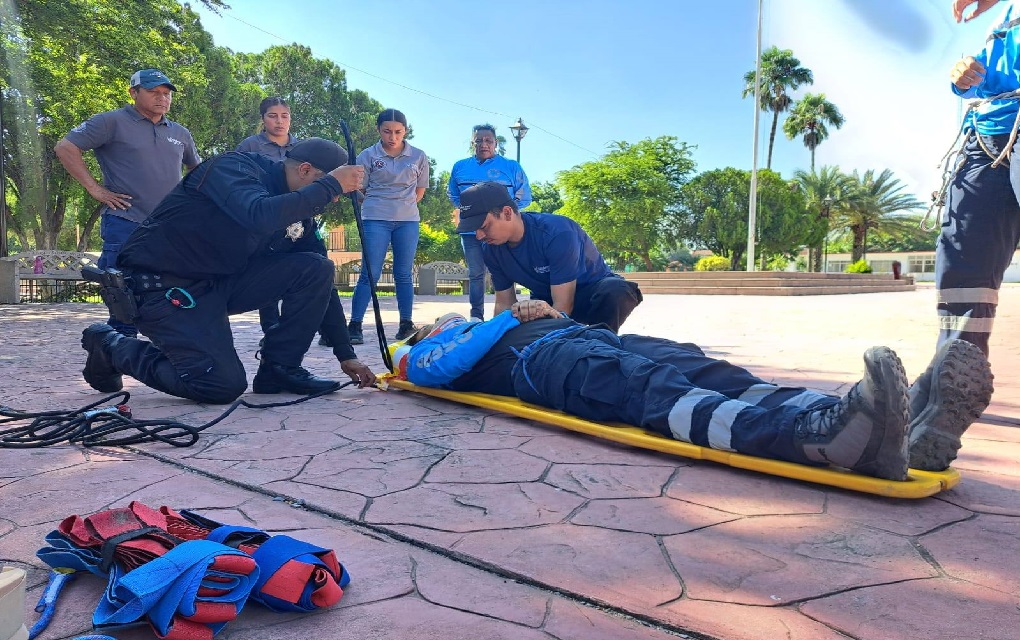 Esta capacitación fue impartida por el Coordinador del Curso de Paramédicos de la Escuela de Centro de Formación y Profesionalismo, además de la teoría, se llevó a cabo una práctica de descenso en rapel en el Puente San Felipe.