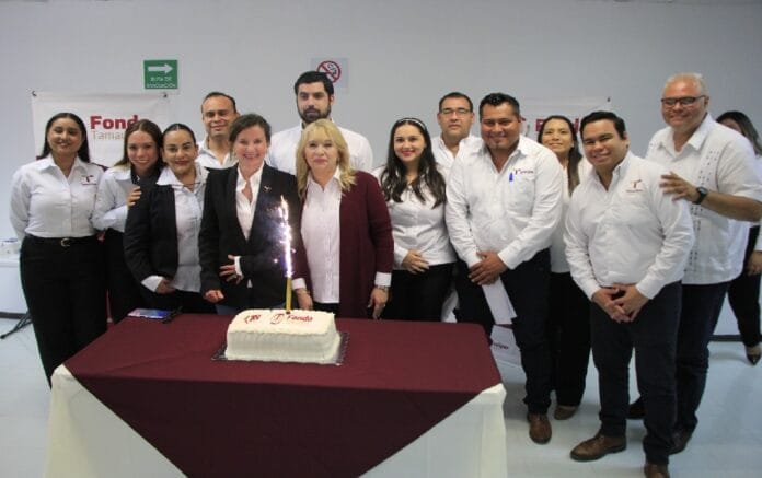 Ciudad Victoria, Tamaulipas.- La secretaria de Desarrollo Económico, Ninfa Cantú Deándar, encabezó este día, la celebración del aniversario 18 del Fondo Tamaulipas junto con la directora general, Sandra Mejía Bárcena y la comunidad de colaboradores de esta institución del gobierno estatal.