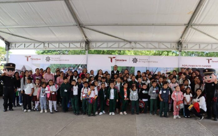 Ciudad Victoria, Tamaulipas.- Con base en la política de puertas abiertas de la Secretaría de Seguridad Pública de Tamaulipas (SSPT), niños y niñas que estudian el nivel básico visitaron las instalaciones del Complejo Estatal de Seguridad Pública y sostuvieron una convivencia con personal de las diferentes unidades de la Guardia Estatal en el marco del tercer aniversario.