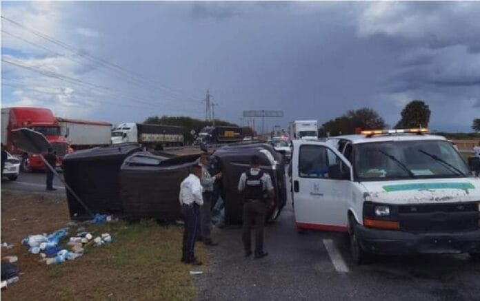Al menos 8 personas lesionadas y elevadas pérdidas materiales, dejó como saldo aparatoso choque con volcadura registrado en la carretera Victoria – Matamoros.
