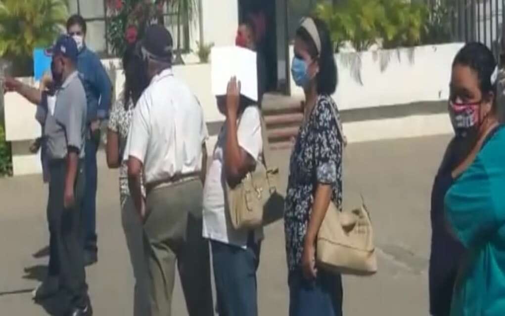 Sin tomar en cuenta la sana distancia, los jubilados y pensionados pasaron un buen tiempo formados para ingresar a las oficinas.