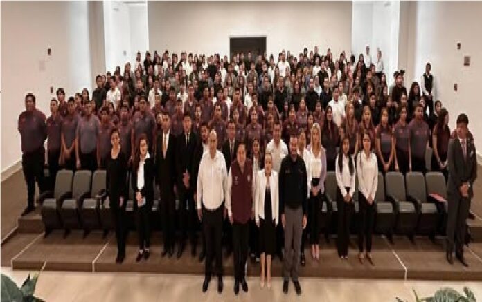 Junto a la directora académica, Jesica Anid Ramos Cruz y el secretario técnico, Juan Carlos Cisneros, el titular de la SSPT, exhortó a las y los estudiantes para contribuir a mejorar las condiciones de las instituciones de seguridad.