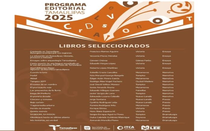 Da a conocer proyectos seleccionados de la convocatoria del Fondo Editorial Tamaulipas 2025