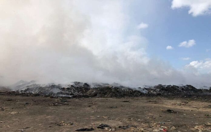Se trabajó en delimitar el área afectada por el fuego para evitar que se extendiera a otra zona del relleno sanitario. Esta actividad no afecta el uso del basurero municipal.