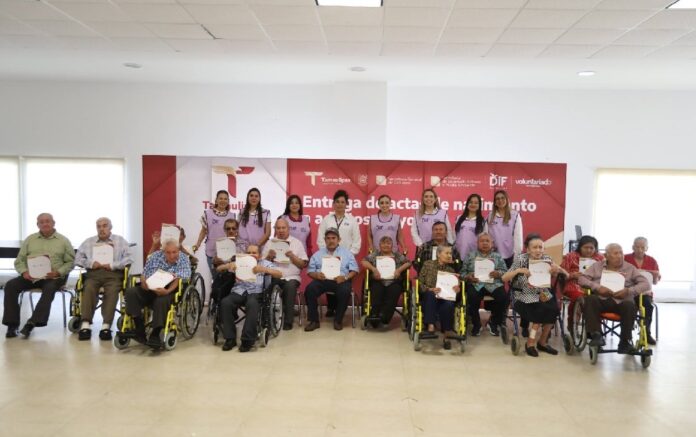 Ciudad Victoria, Tamaulipas.- Como parte de la estrategia impulsada por el gobernador del Estado, Américo Villarreal Anaya, y fortalecida por el compromiso de la presidenta del Sistema DIF Tamaulipas, doctora María Santiago de Villarreal, para asegurar que todas y todos los tamaulipecos cuenten con documentos de identidad que respalden sus derechos, el DIF estatal llevó a cabo la entrega de actas de nacimiento a adultos mayores en la Casa Hogar del Adulto Mayor.