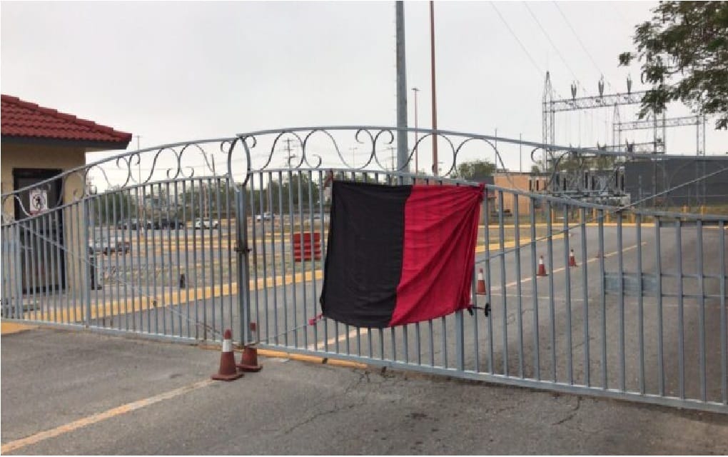 Cabe señalar que mientras se colocaban las banderas rojinegras estaban presentes actuarios de la Secretaría del Trabajo del Gobierno del Estado.