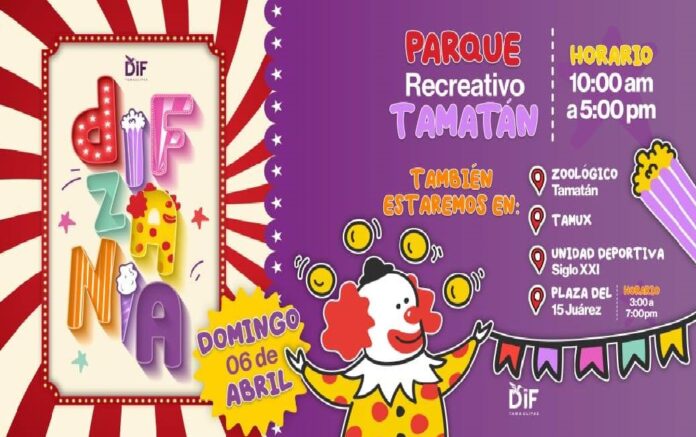 Ciudad Victoria, Tamaulipas.- El Sistema para el Desarrollo Integral de la Familia de Tamaulipas, que preside la doctora María de Villarreal, invita a todas las familias a disfrutar de un domingo lleno de diversión y aprendizaje en DIFzania, este próximo 6 de abril.