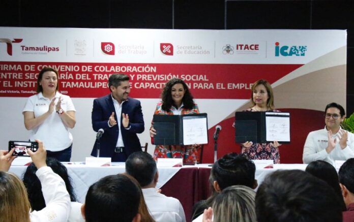 Ciudad Victoria, Tamaulipas.- El gobierno de Américo Villarreal Anaya a través de la firma de un convenio entre la Secretaría del Trabajo y el Instituto Tamaulipeco de Capacitación para el Empleo, capacitará a personas con interés en conducir tractocamiones de quinta rueda y atender una demanda del sector productivo de la frontera y del sur de Tamaulipas; el convenio firmado por la secretaria, Olga Sosa Ruíz y la directora, Claudia Anaya Alvarado, generará oportunidades de empleo digno.