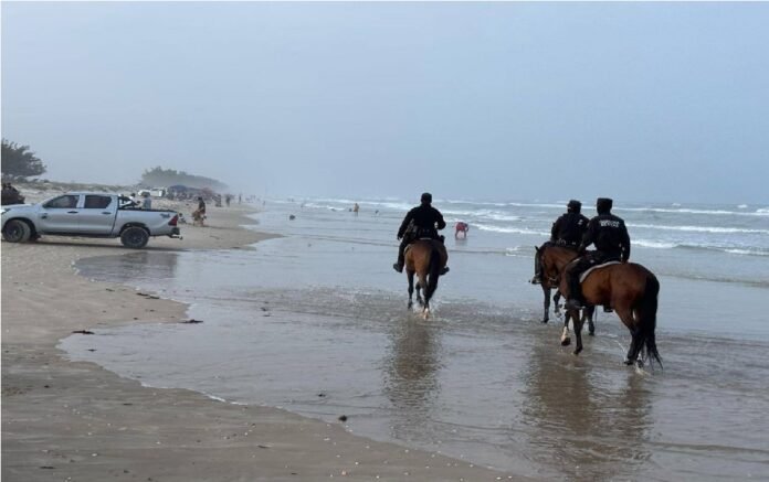 Soto la Marina, Tamaulipas.- Como parte del Operativo Semana Santa Segura, personal del Agrupamiento Montado de la Guardia Estatal mantiene la presencia y vigilancia en La Pesca.