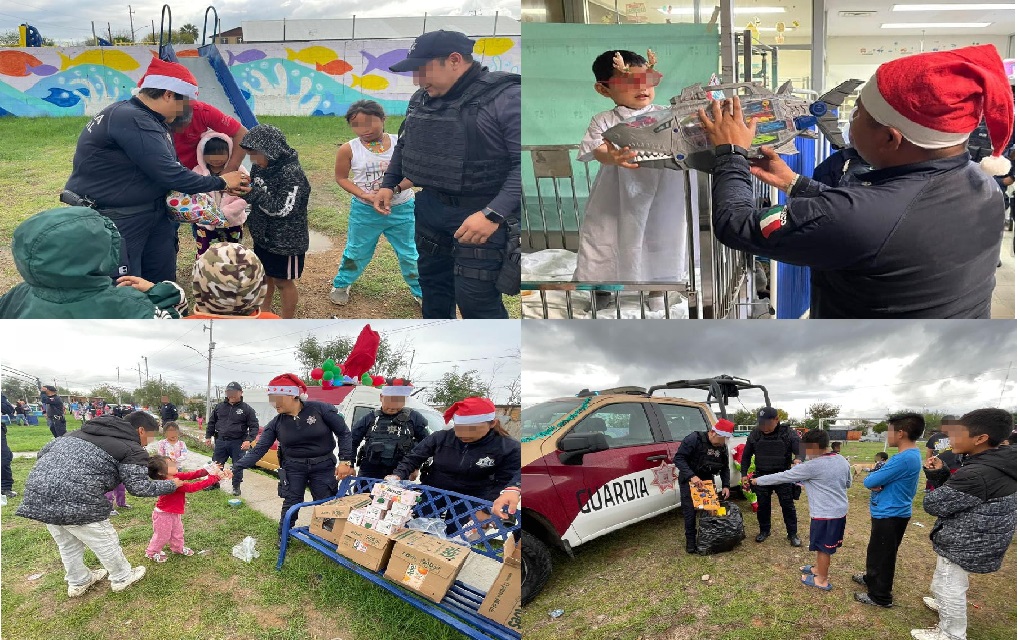 Nuevo Laredo, Tamaulipas.- Continuando con las acciones humanistas trazadas por el gobernador, Américo Villarreal Anaya, el personal de la Guardia Estatal de Género del municipio de Nuevo Laredo llevó a cabo una entrega de juguetes en el marco de las posadas y fiestas navideñas.