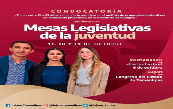 Ciudad Victoria, Tamaulipas.- El Injuve Tamaulipas lanzó la convocatoria “Mesas Legislativas de la Juventud”, con el propósito de crear un ordenamiento local que salvaguarde los derechos de las y los jóvenes tamaulipecos, enfocada con perspectivas de juventudes y estrategias que solucionen las necesidades colectivas.