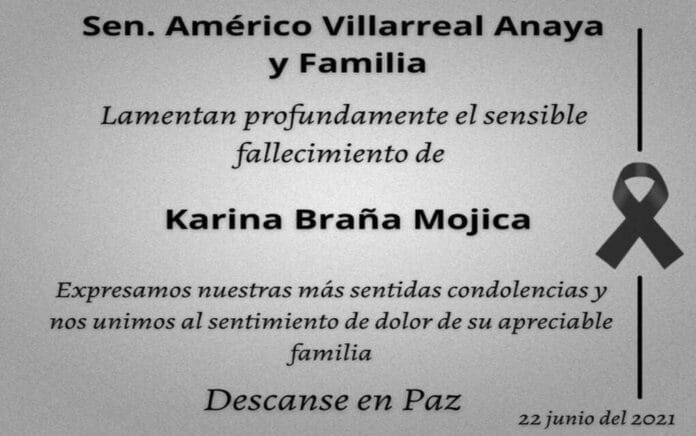 De hecho, el padre de Karina Braña, Notario Público José Antonio Braña, murió este año a causa de Covid; al igual que su tía Úrsula Mojica Obrador, prima del Presidente, y el esposo y un hijo de esta última.