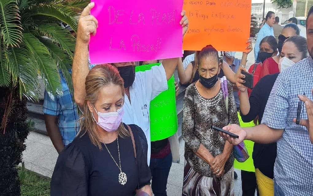 “La situación es que desde el gobierno del Francisco García Cabeza de Vaca han intentado despojarnos de 40 hectáreas de predios a la orilla de la playa la Pesca, somos auténticos propietarios, estamos amparados por que ahora resulta que hay varios dueños ya que este ex gobernador saco a la venta esos predios” informo quien se dijo llamarse Sary Salazar.