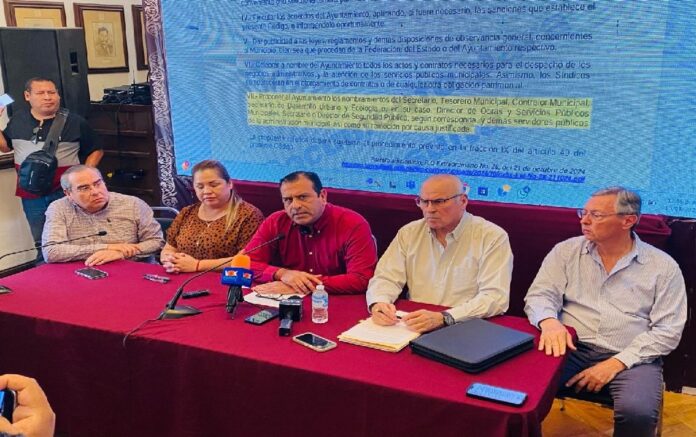 Hugo Arael Resendez Silva Secretario del Ayuntamiento acompañado de los titulares de las áreas Jurídica, Contraloría, Recursos Humanos y Comunicación Social, desmintieron haber perdido un amparo federal que los condena a un resultado precautorio en su contra.