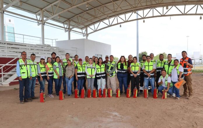 La funcionaria estatal destacó la importancia de mantener una capacitación constante para el personal designado en el manejo de riesgos, por lo que se llevaron a cabo ejercicios prácticos en el recinto ferial para fortalecer sus habilidades en la operación segura y eficaz de los extintores.