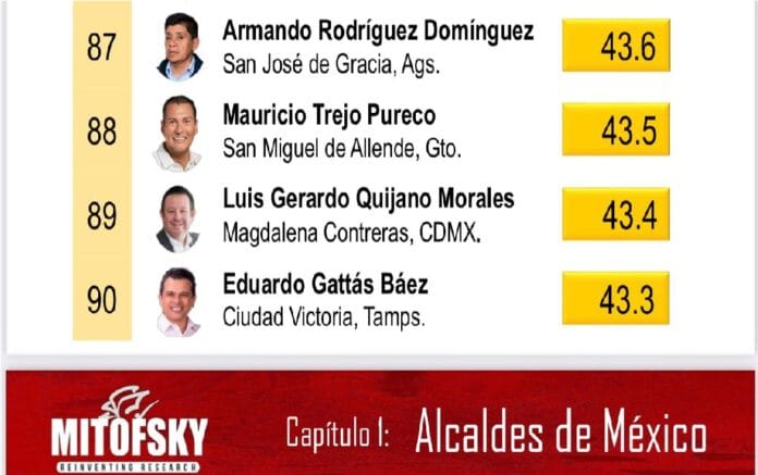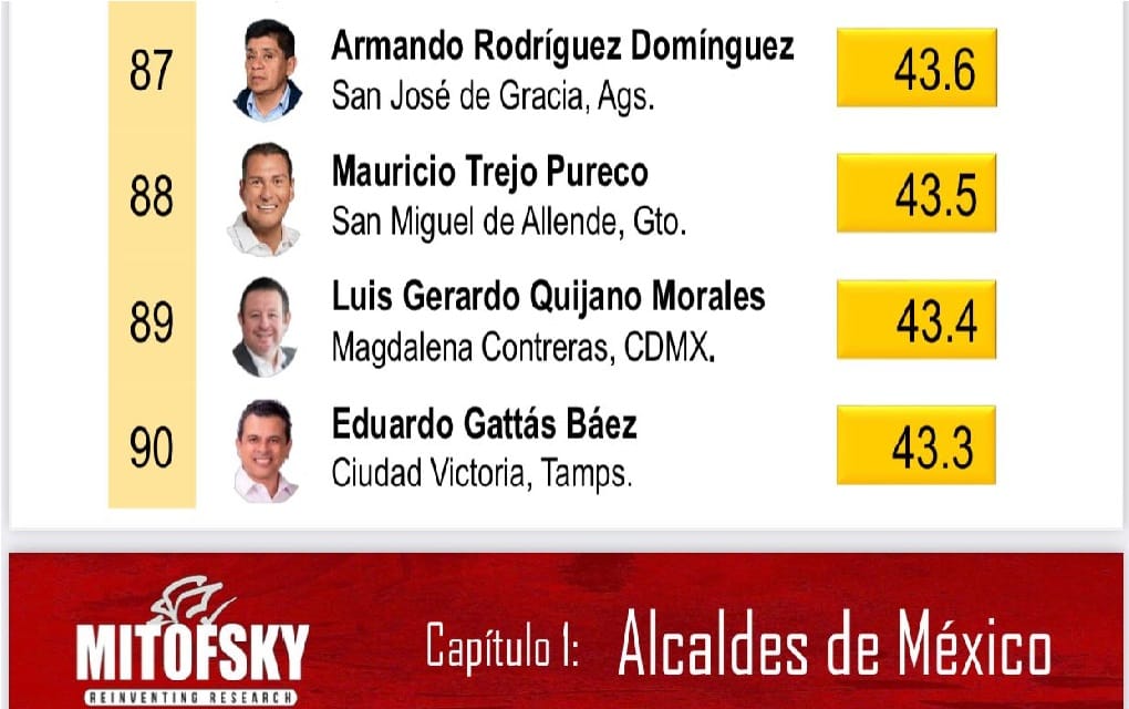 De acuerdo con una encuesta aplicada este mes por la empresa Mitofsky, para medir el porcentaje de aprobación de los alcaldes de 150 municipios de México, el victorense figuró entre los más repudiados, en el lugar 90.