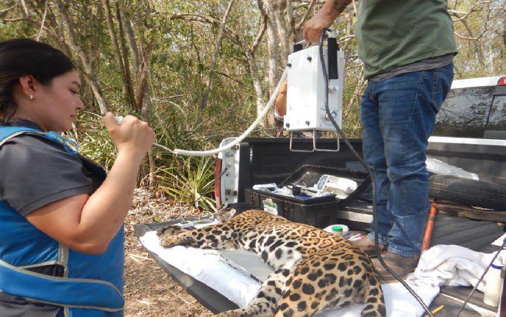 Como parte del protocolo de manejo, el equipo veterinario realizó la evaluación clínica integral del ejemplar, aplicando anestesia para su manejo en campo. Se efectuó el pesaje (40.250 kg), estudios con equipo de diagnóstico portátil (rayos X y ultrasonido), toma de medidas morfométricas, extracción de muestras biológicas (sangre y pelo), así como el registro del patrón de manchas y huellas, fortaleciendo la información técnica del programa estatal.