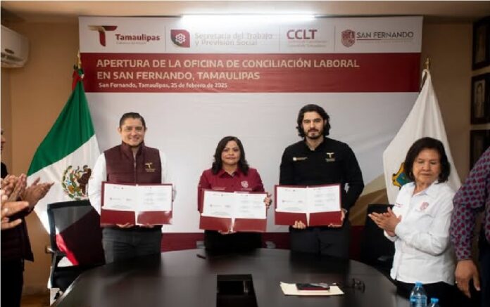 San Fernando, Tamaulipas. – El Centro de Conciliación Laboral de Tamaulipas inauguró en el municipio de San Fernando la primera Oficina de Conciliación Laboral, que permitirá a las y los trabajadores acceder a la justicia laboral sin necesidad de trasladarse a otros municipios. Además, beneficiará a habitantes de Cruillas, Méndez y Burgos.