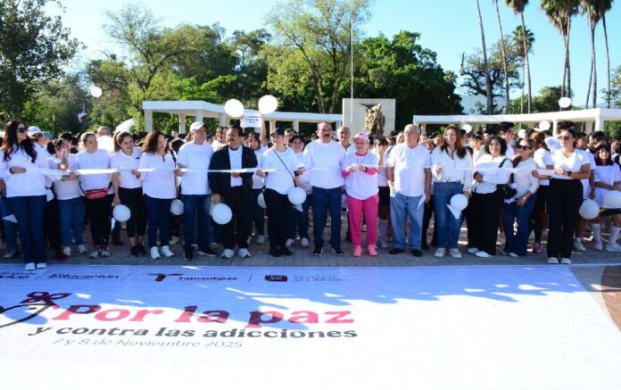 Ciudad Victoria, Tamaulipas.– En el marco de la Estrategia de Cultura de Paz y en seguimiento a la Campaña Nacional por la Paz y contra las Adicciones “El fentanilo te mata, aléjate de las drogas, elige ser feliz”, se llevó a cabo una caminata por las calles de Ciudad Victoria.