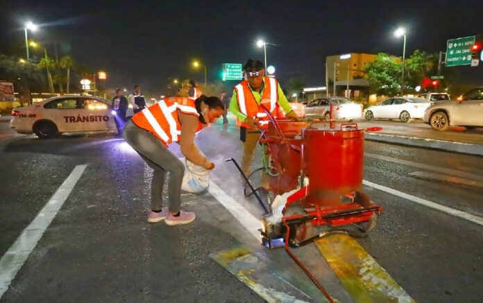 «La instrucción del alcalde Lalo Gattas es continuar y acelerar las acciones de revestimiento de la señalética y guarniciones de la ciudad, y para ello se habilitaron cuadrillas que hacen está tarea en horas nocturnas» explicó el titular de la dependencia Marco Cantú Mercado.