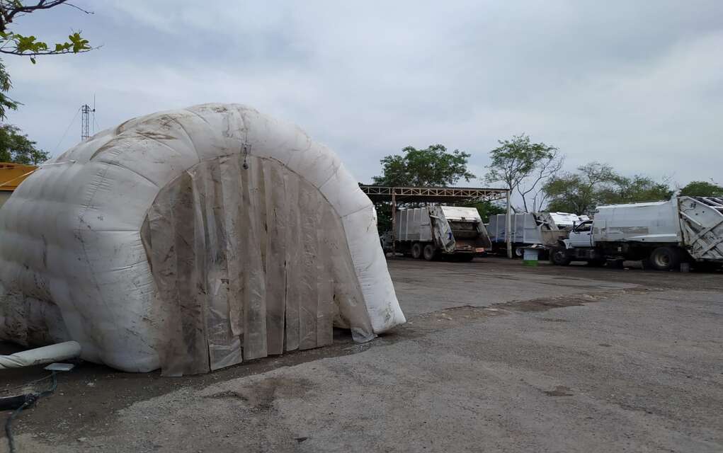 La estructura fue instalada en el acceso al Campamento, para que cuando el empleado ingrese sea rociado con la solución en su cuerpo para ser sanitizado y protegido situación que contrasta de su objetivo; además, no mantiene las medidas básicas de higiene, luce sucio, abandonado, contaminado de hongos, y ni la propia Olga Lidia Vázquez Muñiz, directora de Limpieza Pública ha tomado cartas en el asunto antes de que tengan que lamentar por el deterioro de la salud de los empleados.