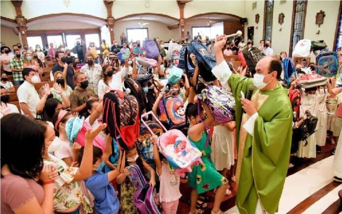 La bendición de las mochilas y de los útiles escolares se ha convertido en una tradición en el sur de Tamaulipas; en iglesias de Tampico, Ciudad Madero y Altamira, los niños son recibidos con su material para volver a la escuela.