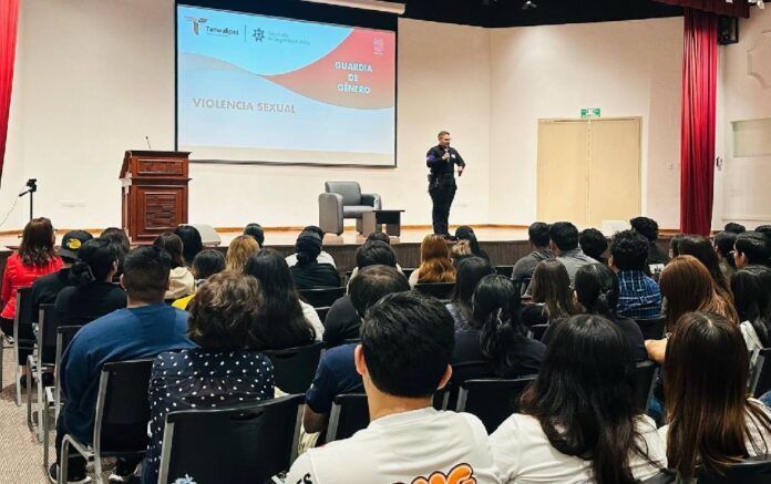 Tampico, Tamaulipas.- Dentro de las actividades que integran la Jornada Cultural para la Prevención de Violencia, personal de la Guardia Estatal de Género en el municipio de Tampico visitó el plantel del Instituto De Ciencias y Estudios Superiores De Tamaulipas (ICEST) en donde brindó una plática informativa a estudiantes.