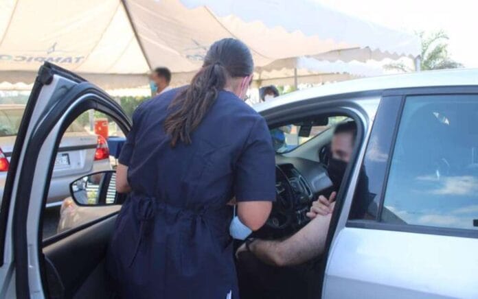 Para la mañana del martes, ya habían ingresado más de 500 unidades vehiculares al drive thru instalado en la UAT «ha sido fluido, continúa, no ha dejado de asistir gente en todo el día, se tienen más de 2500 dosis por sede para cubrir a todos los que lleguen».