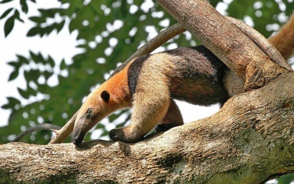El tamandúa de aproximadamente un metro de largo presenta pelaje en color negro y amarillo, dijo Germán Santiago Valdéz director de Ecología y Medio Ambiente, quien manifestó se trata de un ejemplar joven.