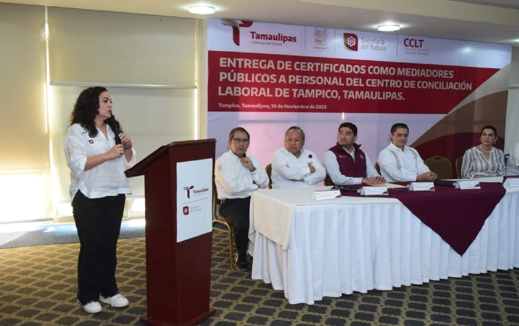 Tampico, Tamaulipas.- Servidores públicos pertenecientes al Centro de Conciliación Laboral en Tampico, recibieron su diploma de certificación como «Mediador Público del Estado», al haber aprobado el examen psicológico y de conocimientos teórico prácticos, por parte de la Dirección de Mediación de la Secretaría General de Gobierno de Tamaulipas.
