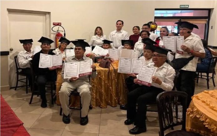 Altamira, Tamaulipas.– Como resultado de la suma de voluntades entre el Instituto Tamaulipeco de Educación para Adultos (ITEA) y el Sistema DIF Altamira, se entregaron certificados de educación básica a adultos mayores que laboran como empacadores voluntarios en una tienda de este municipio.