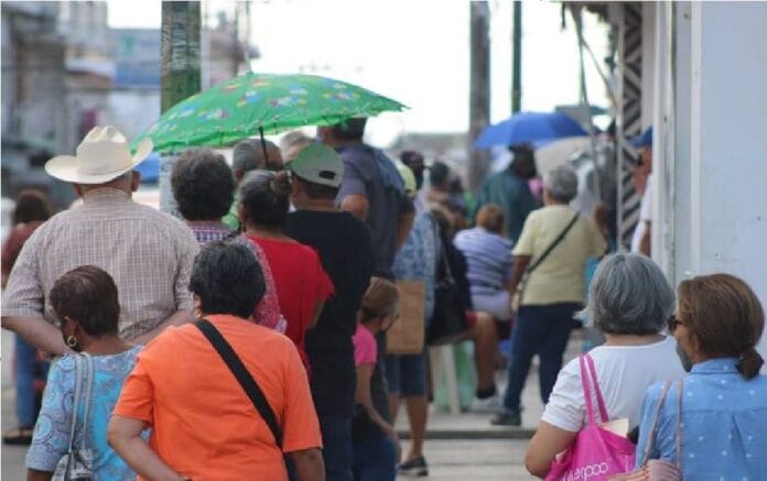 Además, de las kilométricas filas que se registran en los módulos de las jornadas de vacunación, también hay aglomeraciones al exterior de las oficinas del Banco de Bienestar por decenas de abuelitos quienes acuden al pago del programa 65 y más.