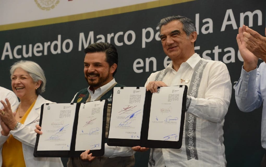Tampico, Tamaulipas. El gobernador Américo Villarreal Anaya firmó junto con el director del Instituto Mexicano del Seguro Social, Zoé Robledo Aburto, el Acuerdo Marco para la Ampliación del Programa IMSS-Bienestar en Tamaulipas, que permitirá transitar a un nuevo modelo de salud que garantiza infraestructura, equipo y más medicamentos para el estado.
