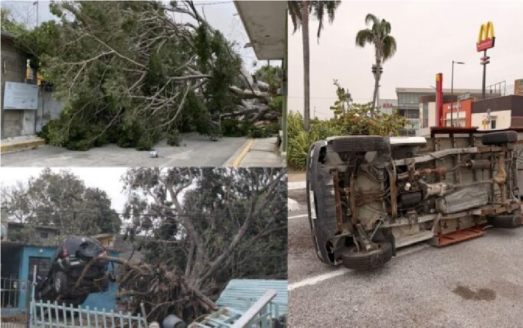 Tampico.- Desde las 6 de la mañana de éste lunes el frente frío 41 impacta a la zona metropolitana con vientos que superan los 100 kilómetros por hora en algunos sitios, como el Puerto Industrial y Playa Miramar. El impacto del meteoro ha provocado cortes de energía eléctrica, caída de postes de alumbrado, cables, muchos árboles, daño a comercios y el temor de muchos ciudadanos que casi nunca presencian fenómenos naturales de esta clase.