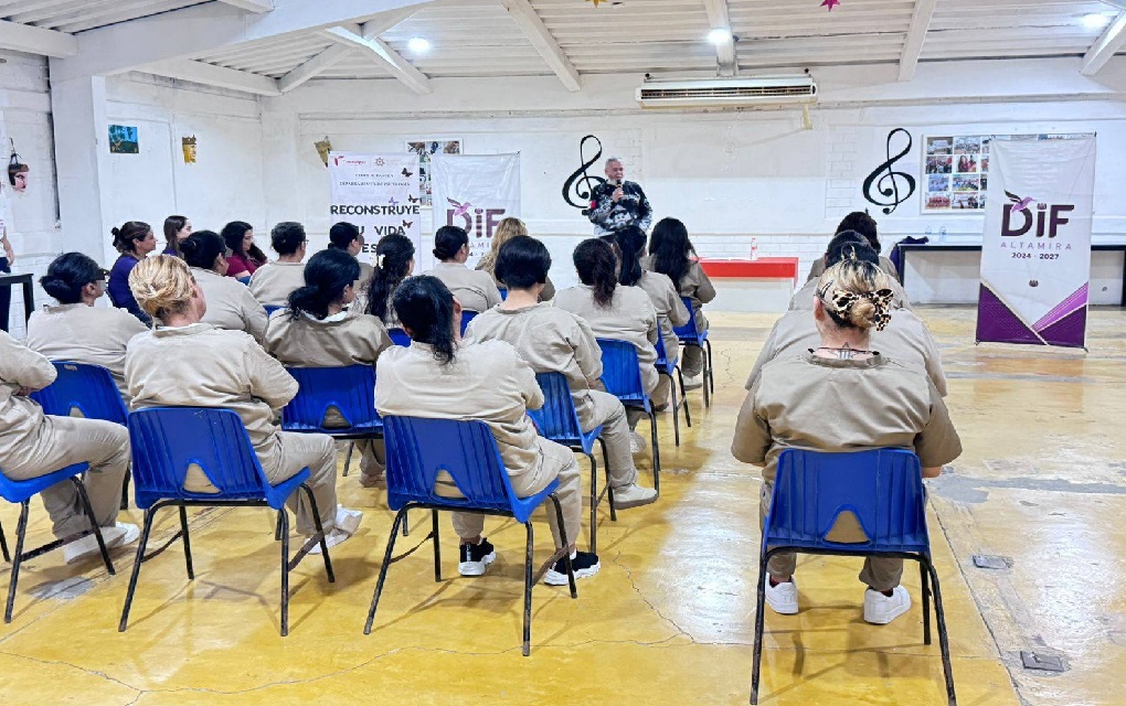 Altamira, Tamaulipas.- Como parte de las actividades conmemorativas del Día Internacional de la Mujer, el Centro de Ejecución de Sanciones (CEDES) del municipio de Altamira recibió a integrantes del voluntariado del Ayuntamiento, quienes impartieron la conferencia “Reconstruye tu vida desde adentro”.