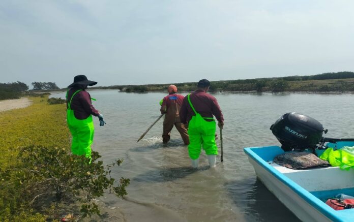 Aldama, Tamaulipas. – Con el objetivo de dar seguimiento y fortalecer el desarrollo de los proyectos de granjas de ostión en los municipios de Aldama y San Fernando, personal técnico de la Subsecretaría de Pesca y Acuacultura, encabezada por el subsecretario Jorge de Jesús Montagner Mendoza, realizó visitas de trabajo en la Barra de San Vicente y en el poblado de Carbonera Norte.